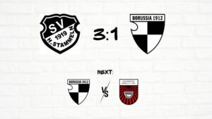Die Borussia hat das Auswärtsspiel bei Schwarz-Weiß Düren deutlich mit 4:8 verloren. Nach der Niederlage gegen Tabellenführer Winden hatte man sich viel vorgenommen und startete trotz eines frühen Rückstands in der 11. Minute noch mit Hoffnung: Nur wenig später gelang der Ausgleich. Doch dann folgte ein kompletter Einbruch. Innerhalb von